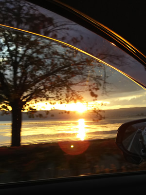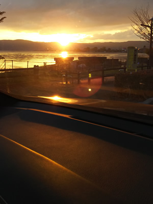 メッセからの帰り道、諏訪湖に沈む夕日がとてもキレイでした!(西澤)。